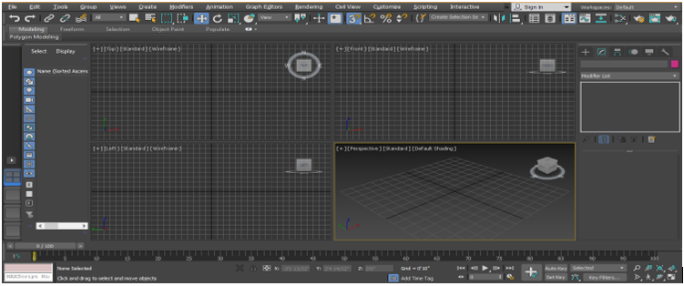 There are four viewports working areas in 3D max software that are Top viewport, Front viewport, Left viewport, and the last one is Perspective viewport. We can choose any one of them for drawing our model at any time.