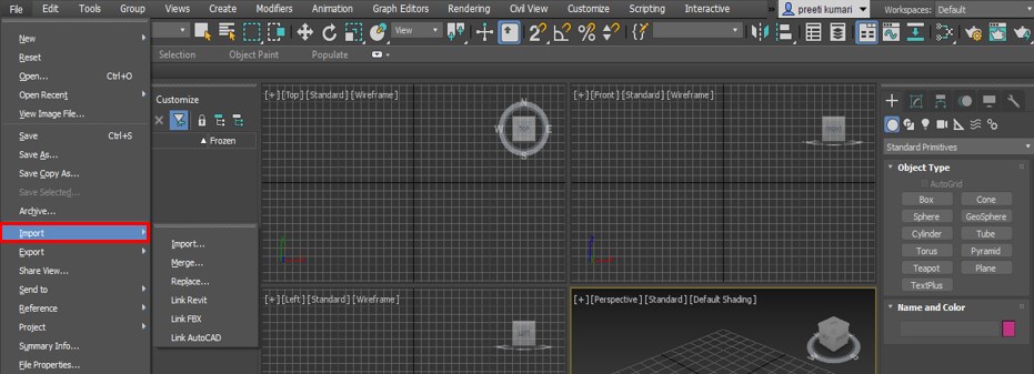 Step 17: In the file menu, we have Import and Export option for importing and exporting any file.