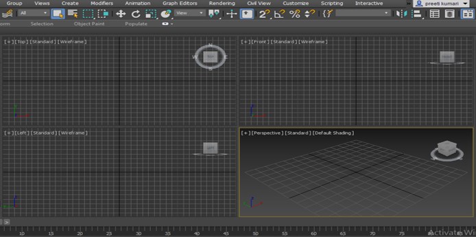 Step 1: Below this, we have our working window area divided into four viewports. Viewport means a part of a working window into which you can see your object from different sides. We have four viewports in the working area of this software is Top viewport in which you can see your object from the top of your object, Front viewport in which you can see your object from the front side of your object, Left viewport in which you can see your object from the left side of your object, Perspective viewport in which you can see the 3d model of that object.
