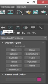 Step 4: We have to create a tab in the common panel of this software. In Create tab, we have different commands tab for making 2d shape, 3d shape with them such Box, Cylinder, Line, Circle, etc.