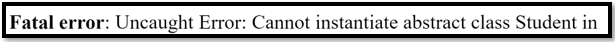 $obj = new Student; //this statement throws error as we cannot create object of class Student as it is defined as abstract