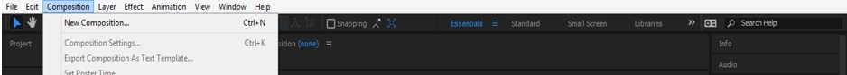 Step 2: Now, let us have a new composition for our learning. For New Composition, go to the Composition menu of the Menu bar, which is at the top of the working screen of this software, and click on it. Now click on the ‘New Composition’ option of the drop-down list.