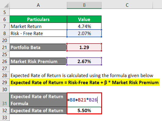 - Expected Rate of Return = 2.07% + 1.29 * 2.67%