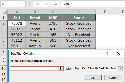 Next, go to conditional formatting and choose “Highlight Cells Rules”, where we will get an option called “Text That Contains”, which is shown belo”.