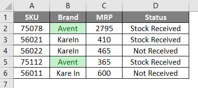 We can apply conditional formatting to display alternate row colors by following the below step. First, select the Brand row to use the Alternate color for the rows shown in the screenshot below.