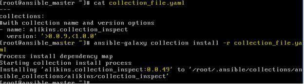 We can even specify a range to install the most recent version within that range. For detailed information please check official documents. We can install collections using the YAML file as well and specify directives like name, version, source, etc. as we do it for roles.