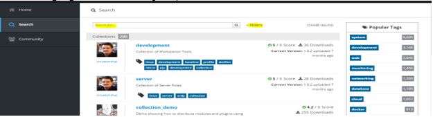 1. We get below page once we browse to ‘galaxy.ansible.com’ or we can say below is the homepage of the ‘Ansible Galaxy’ website. We can click on any popular category from the homepage or click on the ‘Search’ button to get more filters to apply a granular search.