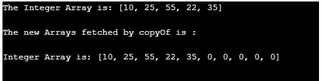 System.out.println("\nThe new Arrays fetched by copyOf is :\n");