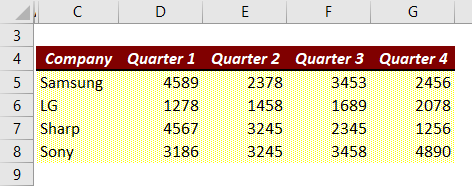 The above figure shows that the highlighted formatting style is selected from the list of 16 different formatting styles, and the ‘Patterns’ formatting option is removed.