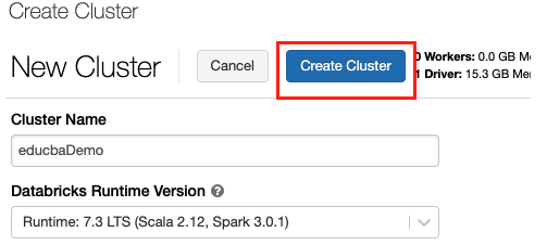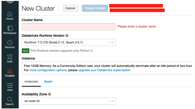 Step 10: Now on the new cluster page enter the values to create a cluster.