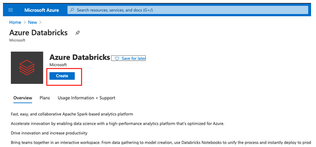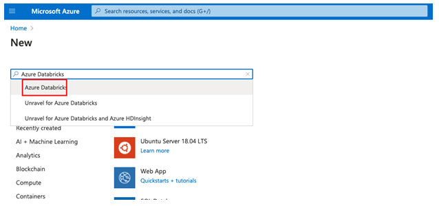 Step 3: In the search field of azure marketplace search for azure databricks and click on enter to open the azure databricks create page.