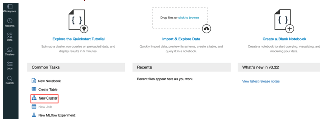 Step 12: Once the cluster is running users can attach a notebook or create a new notebook in the cluster by clicking on the azure databricks.
