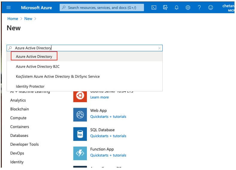 Step 3: In the Search, the Marketplace filed enter Azure Active Directory: