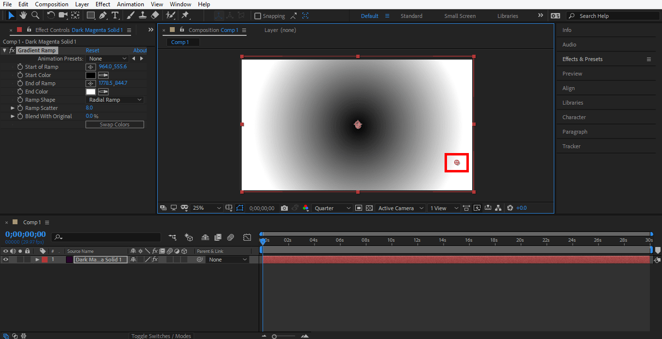 Step 9: By holding and dragging this circular plus icon, you can change the radius of the radial gradient or change the parameter of the End of Ramp option manually for changing the radius.