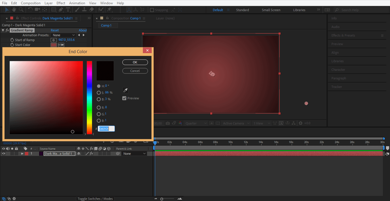Step 10: You can also change the color of the gradient. Double click on the Start Color option of the gradient parameter to change the color at the center.