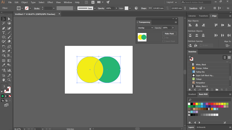 Step 4: Now, we will apply all the blend modes offered in the transparency mode on the created circle shapes and see the results.