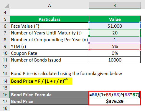 On the other hand, the formula for zero-coupon bond (putting C = 0 in the above formula) is represented as,
