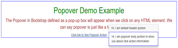 As you can see in the output, the Click Me to See Popover Action link shows a popup that is called as
