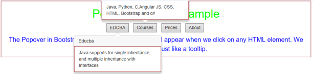 This is a guide to Bootstrap Popover. Here we discuss how popover works in Bootstrap and the examples and codes. You may also have a look at the following articles to learn more –