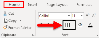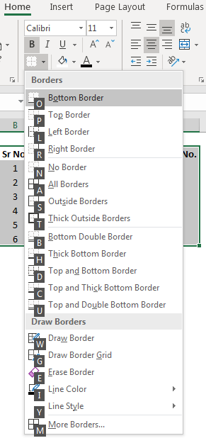 - Borders can be used with the shortcut Alt + H + B, which will directly take us to the Border option.