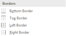 The third section combines the bottom borders, Bottom Double Border, Thick Bottom Border, Top and Bottom Border, Top, Thick Bottom Border, and Top Double Bottom Border.