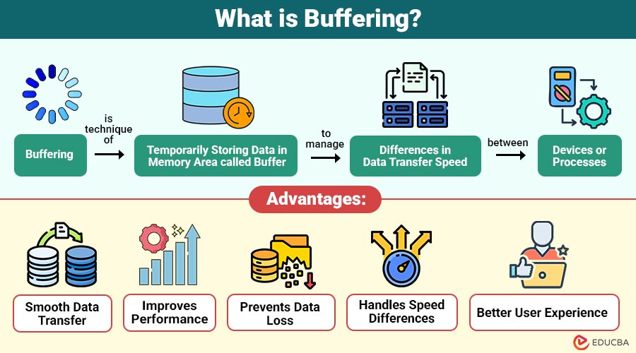 • Buffering temporarily stores data in memory to maintain smooth communication between devices working at different processing or transfer speeds.