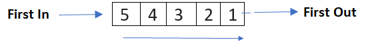 As shown in below figure, if elements are inserted in the order of 1->2->3->4->5 in the queue then they are extracted from the queue in the order of first inserted element will be extracted first and then rest that is in the order of 1->2->3->4->5.