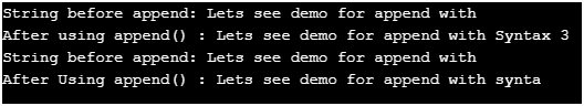 string my_str1("Lets see demo for append with Syntax 5 ");