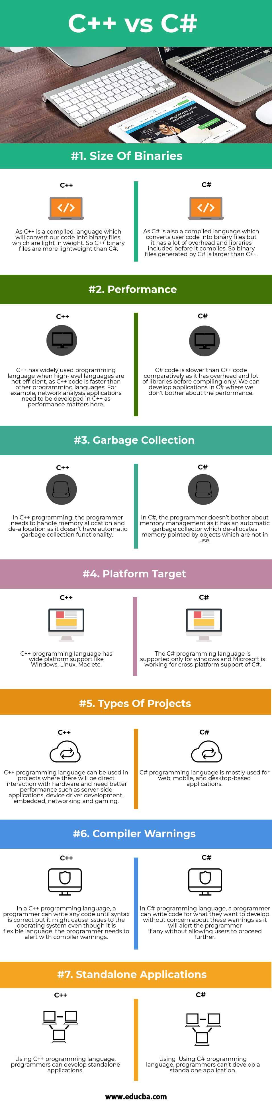 This has been a guide to the top differences between C++ vs C#. Here we also discuss the key differences with infographics and comparison table. You may also have a look at the following articles to learn more –