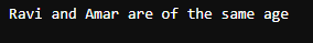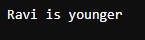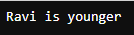- Problem Statement: Ravi’s age (R_age) is 15 years. Amar’s age(A_age) is 12 years. Print if Ravi is elder or younger or equal to Amar.