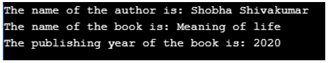 Console.WriteLine("The publishing year of the book is: {0}",checkvar.publishingyear);