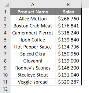 Step 4: Now, it will ask for the numbers, so give the data range, which is available in column B. Write in cell E3. “=SUM (B2:B11) “