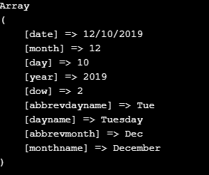 cal_from_jd: This function can be used to convert the calendar from Julian day count to the supported calendar. In the same way, we have a function cal_to_jd() to convert the calendar to the Julian Day Count. Let’s understand the same with an example.