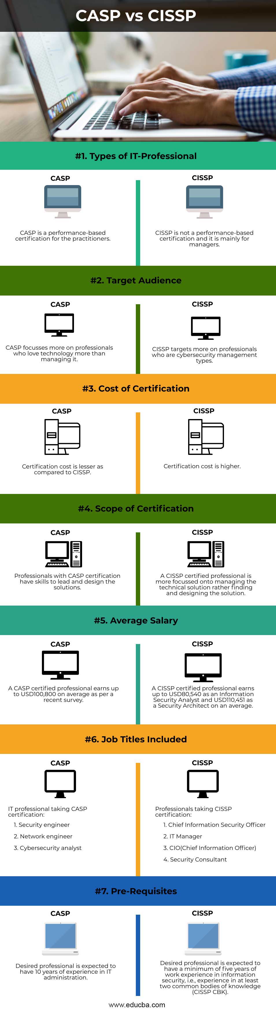 This has been a guide to the top difference between CASP vs CISSP. Here we also discuss the CASP vs CISSP key differences with infographics and comparison table. You may also have a look at the following articles to learn more –