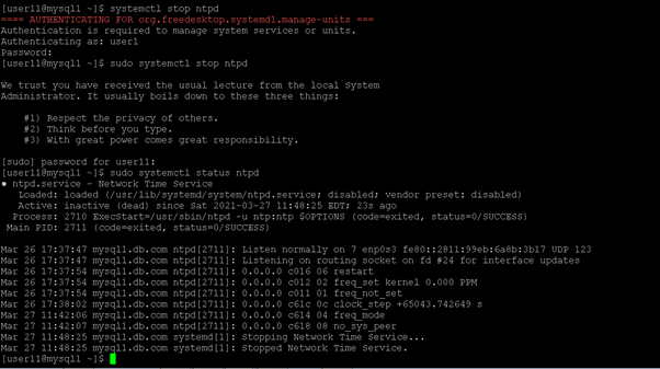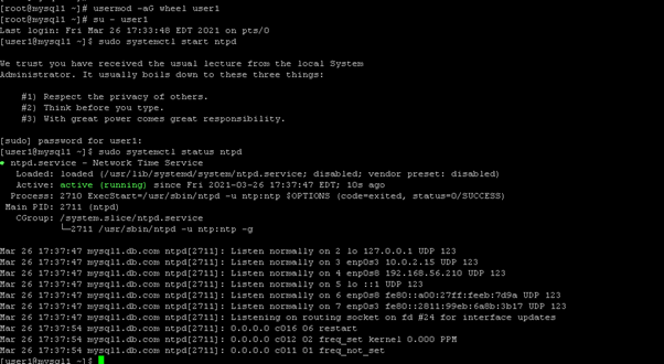 As per the above command, we are modifying the group for the “user1” user. In screenshot 1 (a), we are not able to run the “systemctl” command because we need sudo access. Once, we have added the user to the wheel group. The user1 will get the sudo access and the ability to run the command (please refer to screenshot 1 (b)).