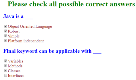 <input type="checkbox">Object Oriented Language
