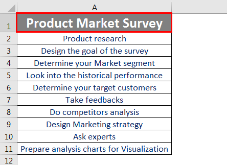Prepare the list of activities for your assignment. In this example, I have used the Product market survey checklist that lists all the activities I will do for the assigned project.