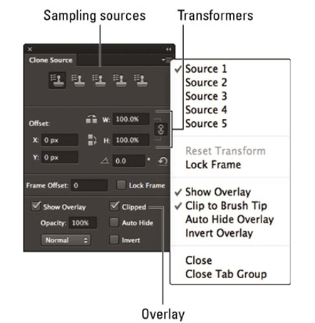 - Sample Sources: In step 8, the Alt-click (Optional Click on Mac) defines the region of your image you’d like to clone. However, in the panel of clone sources, you can select and repeat an alternative clone source button in another area of your image (Click on Mac option).
