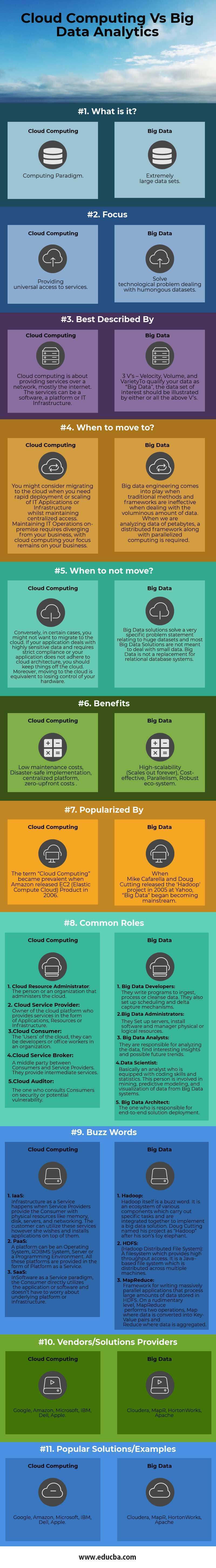 Below are the Top 11 Comparison between Cloud Computing vs Big Data Analytics: