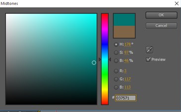 Step 12: Expand the values of Tritone and let us change the values of Midtones. Change the midtones fill color value to 037571.