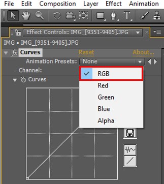 Step 3: Once we select the curves we can get color adjustment options. In that, we have 5 channels like RGB, Red, Green, Blue, and Alpha. We need to expand each channel to get good output.