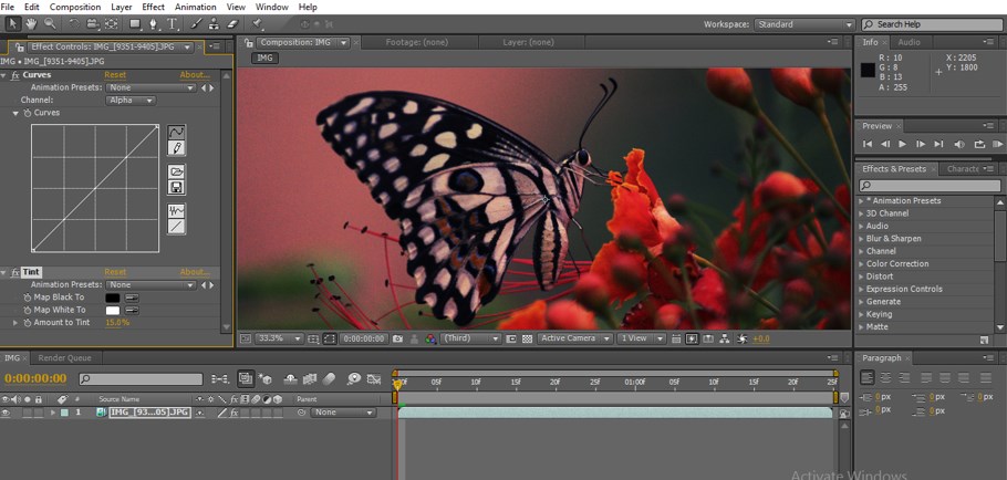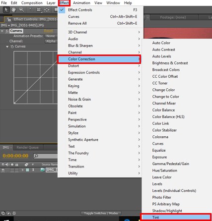 Step 9: Let’s work with Tint now. Go to Effects, Color Correction, select Tint.
