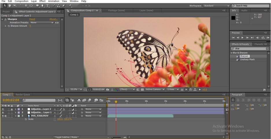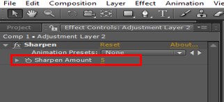 Step 5: Go to effects and presets and select sharpen effect then apply to adjustment layer 2.
