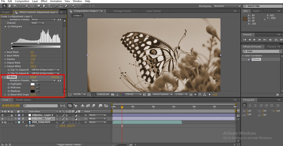 Step 21: Now let’s see the main important option in color grading that’s is CC Toner. Go to Effects, Color Correction, CC Toner.