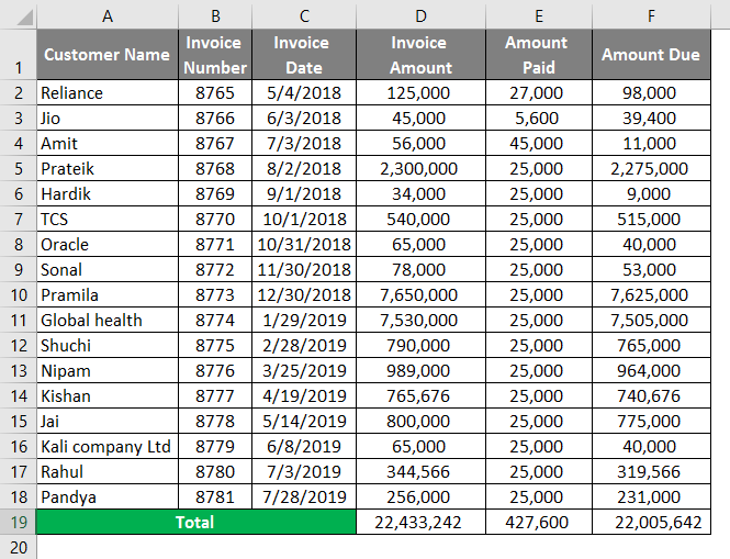 - Suppose there is data related to customers in Excel, as shown in the below screenshot.