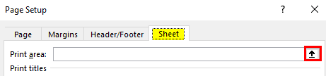 - To select Print Area, click on the button on the right side, as shown in the screenshot.
