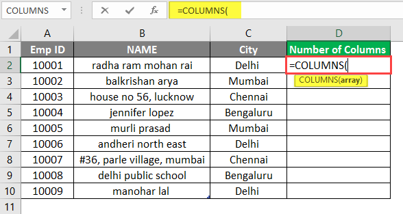 How to Use COLUMNS Formula in Excel? COLUMNS Formula in Excel is very simple and easy. The Argument in the COLUMNS Function: