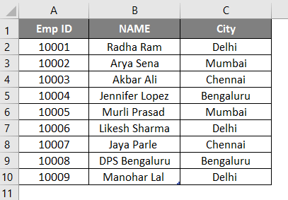 It will then ask for an array in which the table’s range means the total cells in the table, select cells A1 to C10.
