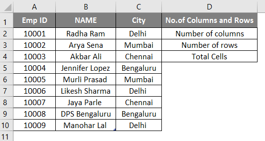 Sheet 3 contains a table with data, including Employee ID, Name, and City. So, a user wants to count the number of cells in the table.