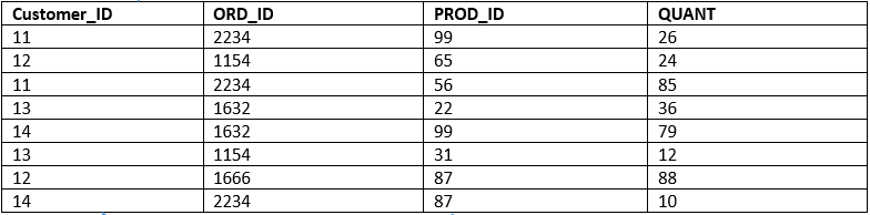 Here in the above “Order” table, we have columns such as “Customer_ID”, “ORD_ID”, “PROD_ID” and “QUANT”. Here “Customer_ID” is a primary key in the table “Cust34”. However, in the table “order”, it is duplicated and we cannot make it as the primary key. It goes the same with the “ORD_ID” and “PROD_ID”.